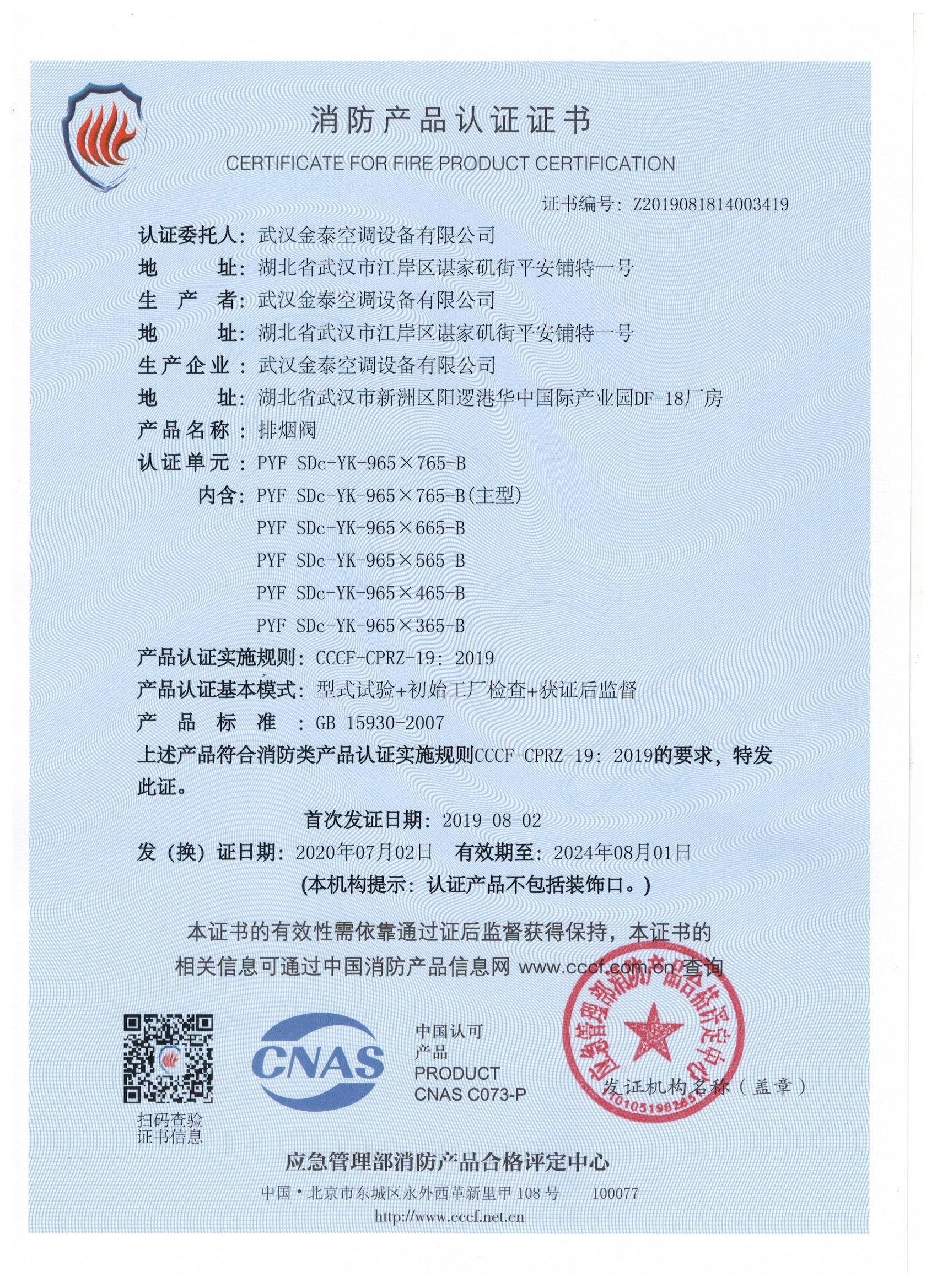 武漢金泰空調(diào)設(shè)備有限公司 是國(guó)內(nèi)長(zhǎng)期專(zhuān)注于民用風(fēng)機(jī)、工業(yè)風(fēng)機(jī)領(lǐng)域的標(biāo)桿企業(yè):專(zhuān)業(yè)生產(chǎn)消防排煙風(fēng)機(jī)系列、排煙防火閥系列、一般通風(fēng)機(jī)系列(軸流式、離心式、屋頂式、壁式、隧道式、射流式)、風(fēng)口、風(fēng)管等消防及通風(fēng)設(shè)備。產(chǎn)品經(jīng)公安部消防產(chǎn)品合格評(píng)定中心評(píng)定符合消防產(chǎn)品CCC標(biāo)準(zhǔn);經(jīng)中國(guó)合格評(píng)定國(guó)家認(rèn)可委員會(huì)認(rèn)證的檢驗(yàn)所檢驗(yàn)合格;經(jīng)國(guó)家防火建材質(zhì)量監(jiān)督檢驗(yàn)中心(四川中心)火燒實(shí)驗(yàn),耐火性能達(dá)標(biāo)。